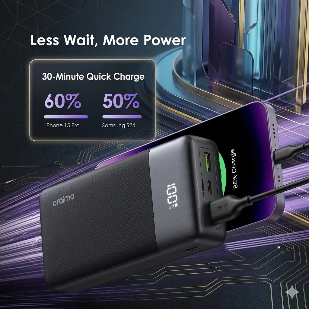 Equipped with advanced fast charging support, the Oraimo PowerNova Q21 reduces waiting time and delivers quick power to your devices. It ensures stable and efficient output for safe charging performance.