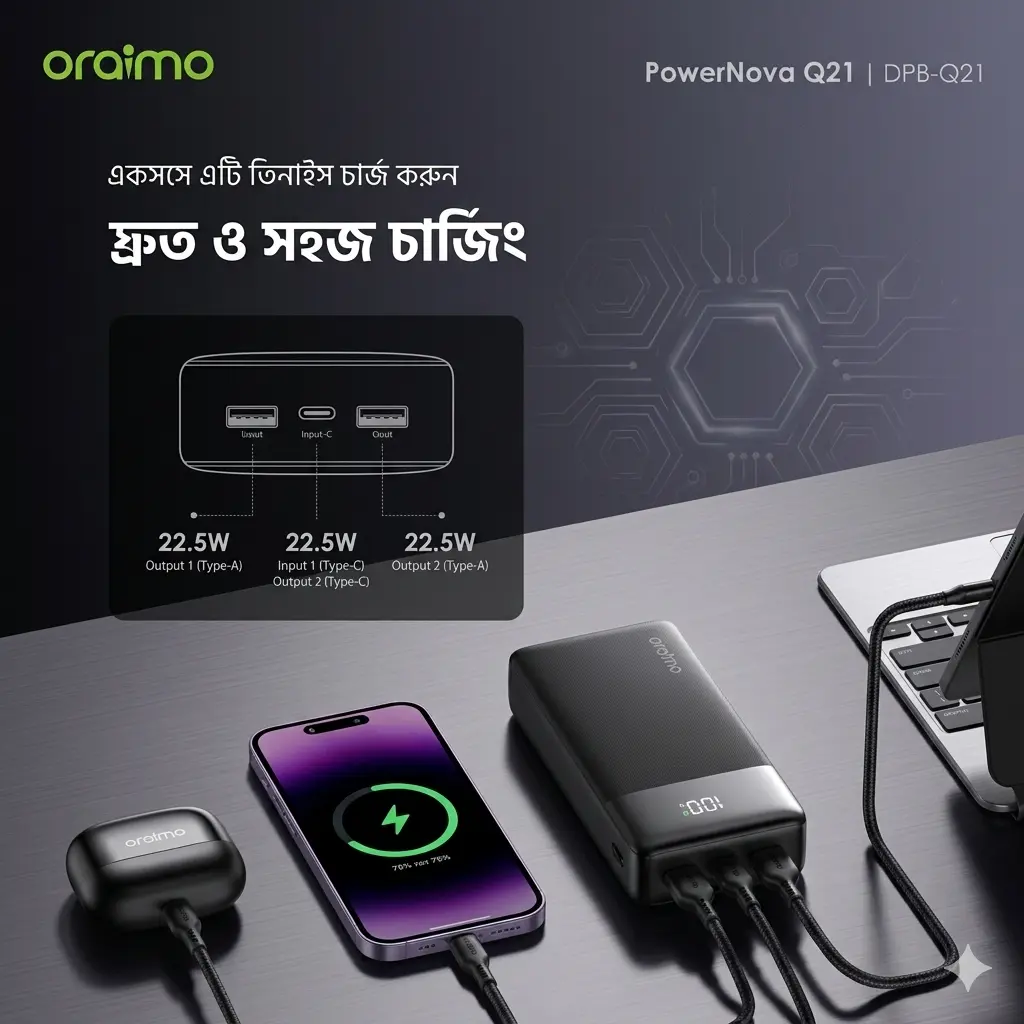 The Oraimo PowerNova Q21 Power Bank is the perfect combination of power, reliability, and convenience. If you are looking for a budget-friendly yet powerful charging solution in Bangladesh, this is one of the best choices for you.